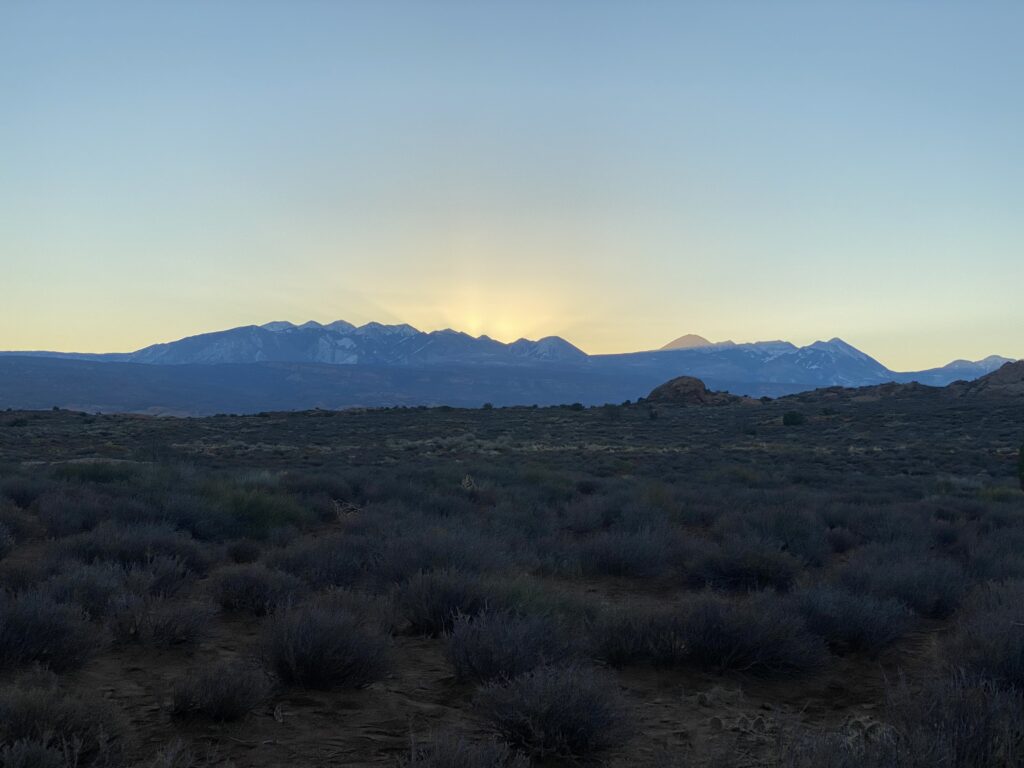 We parked at Green River State Park for two nights. Saturday morning, October 30, C woke up early and decided it was time to head over to Arches National Park in time to see the sun rise.