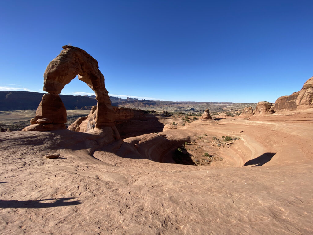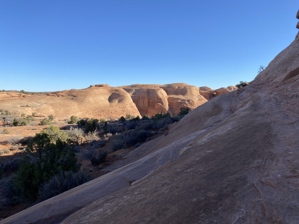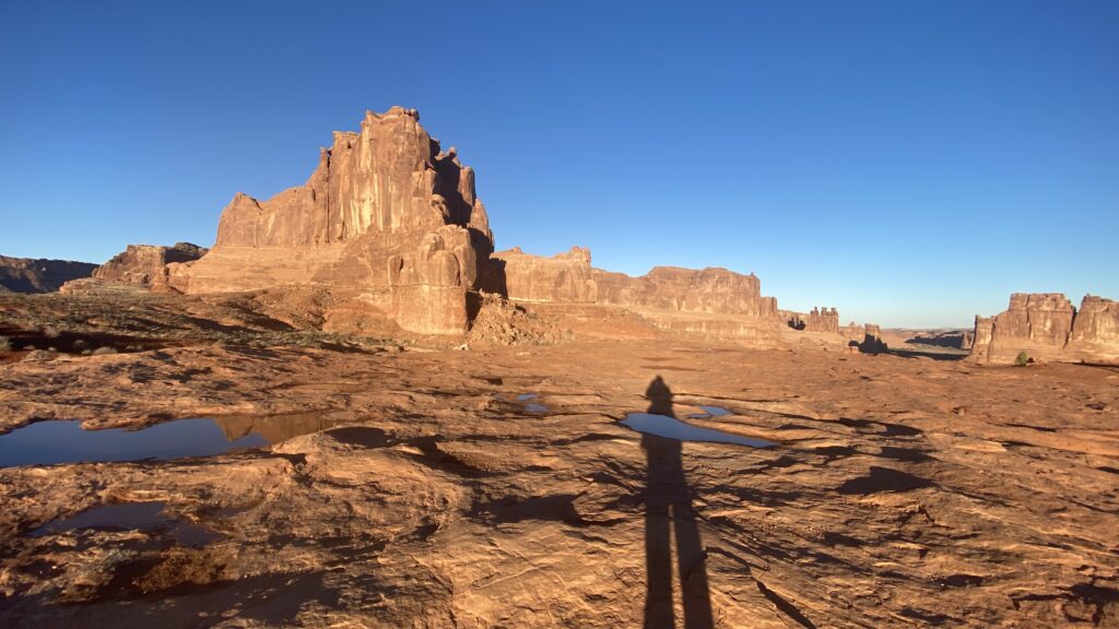After a good night’s sleep, the time change ‘Fall Back’ prevented another sunrise over Arches. Regardless, we arrived at the Delicate Arch trailhead early enough for a primo parking place. C met a really neat young lady from Martha’s Vineyard, Massachusetts. She was on her way east and gave me some pointers about Zion. Thanks for the pics and the great conversation, H.R!