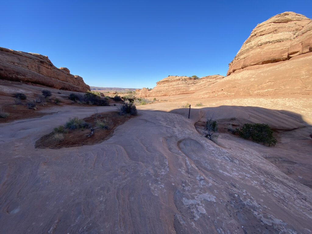 After driving all the way into the park, we stopped at the Devil’s Garden trailhead and C headed out with a goal of making it to the Double O arch, but turned back at a particularly treacherous point. I don’t blame her.