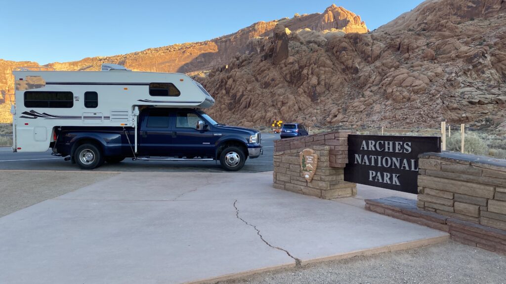We parked at Green River State Park for two nights. Saturday morning, October 30, C woke up early and decided it was time to head over to Arches National Park in time to see the sun rise.